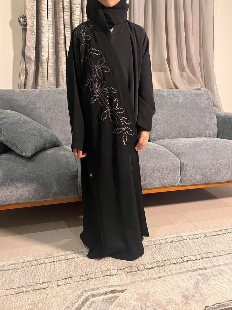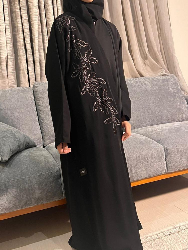 عباية مزينة بتطريز الورد في الكم و الجان...