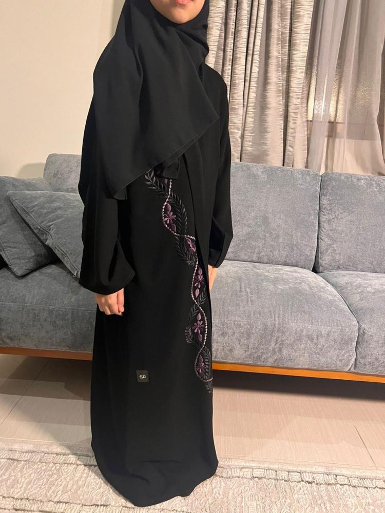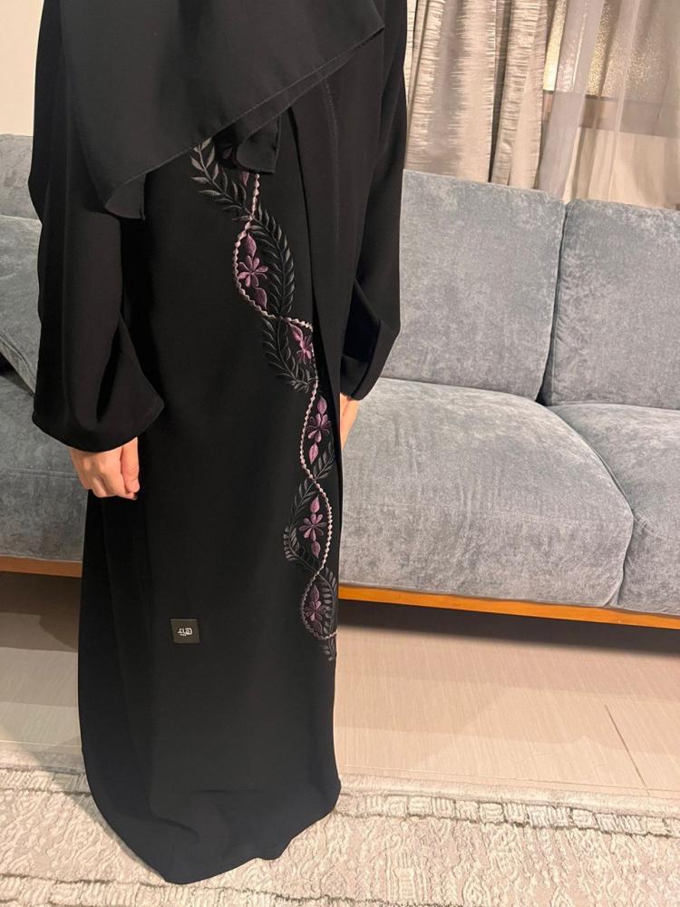 عباية سوداء مزينة بتطريز وردة في الكم. 1...