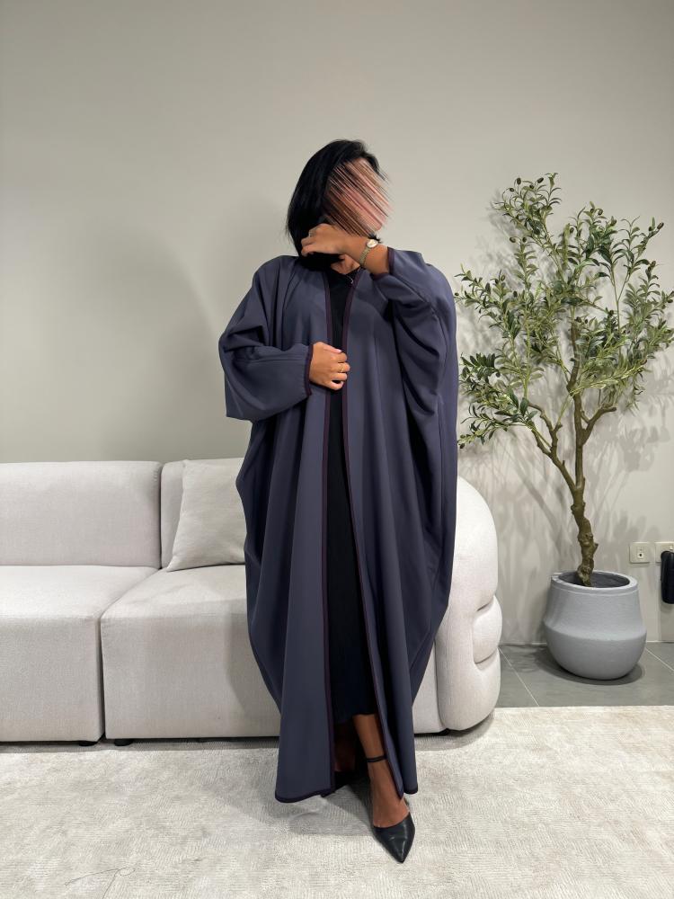 عباية قصة عادية مزينة بتطريز اسود. 1124