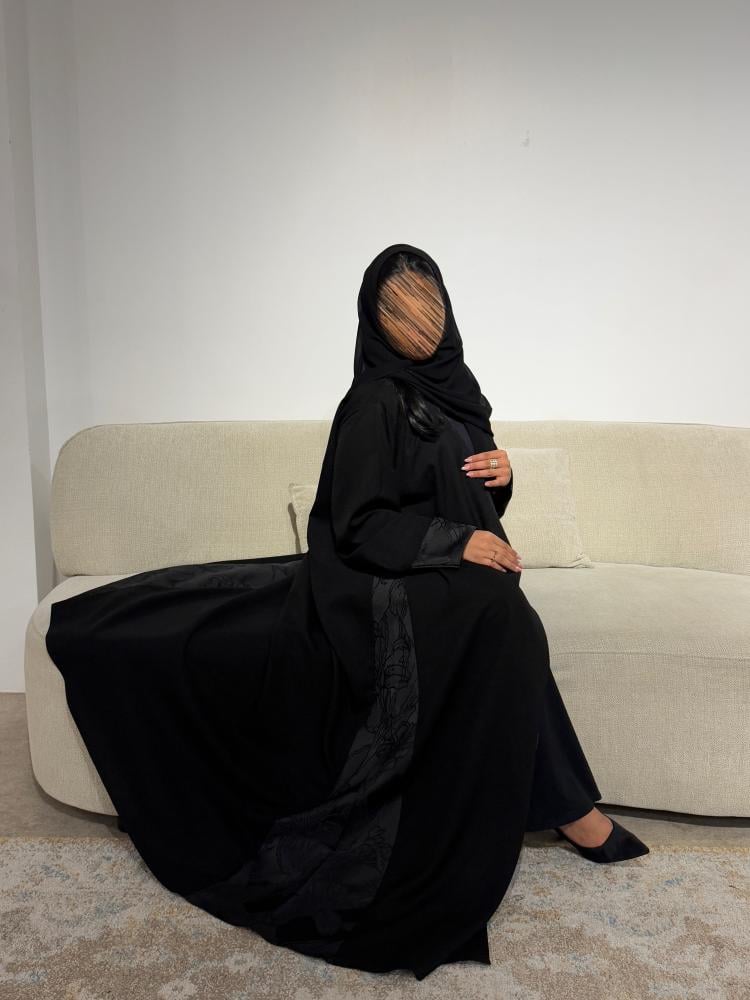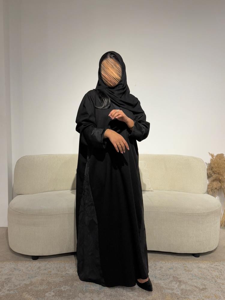 عباية سوداء مزينة بتطريز وردة في الكم. 1...