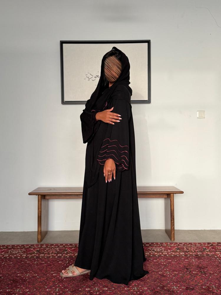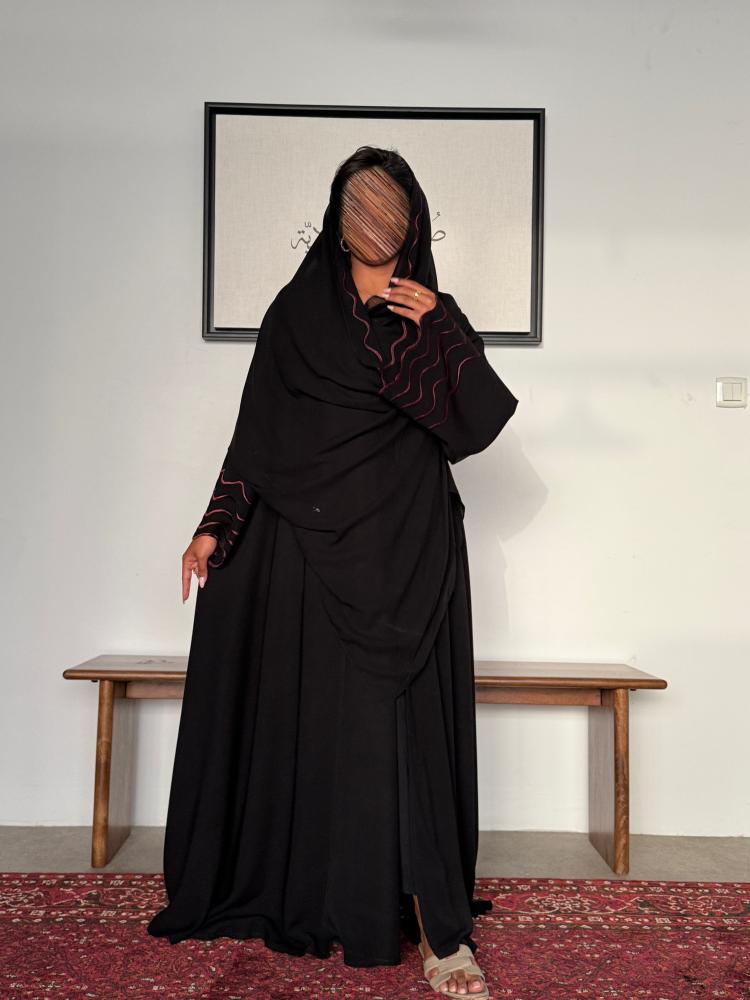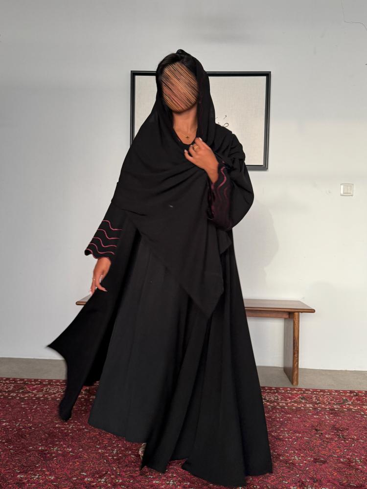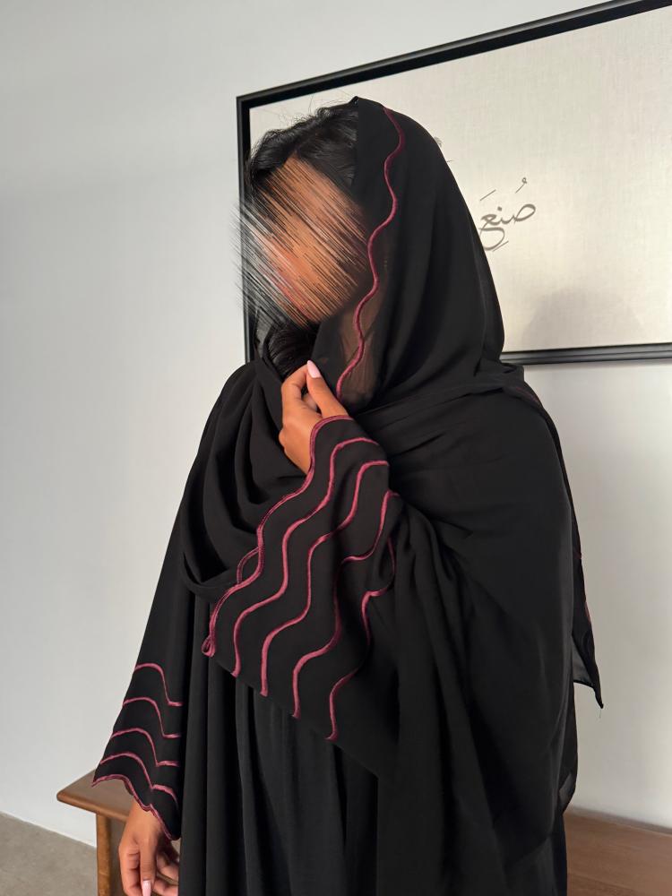 عباية مزينة بتطريز عنابي "موج " 1190