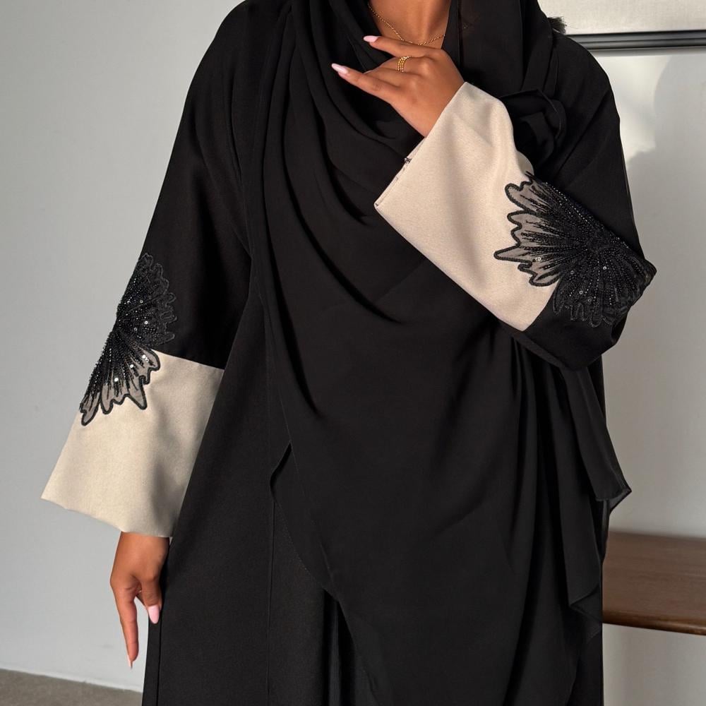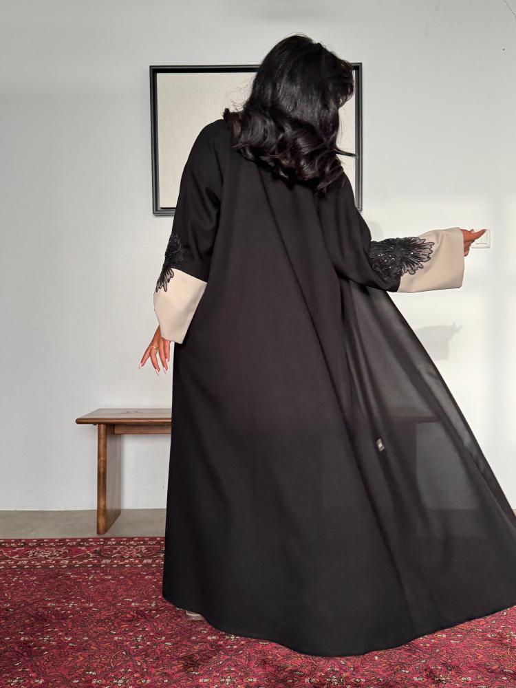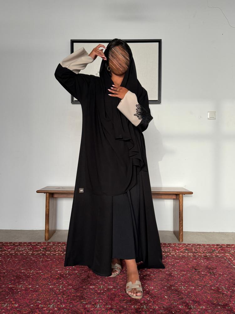 عباية مزينة بتطريز الورد في الكم و الجان...