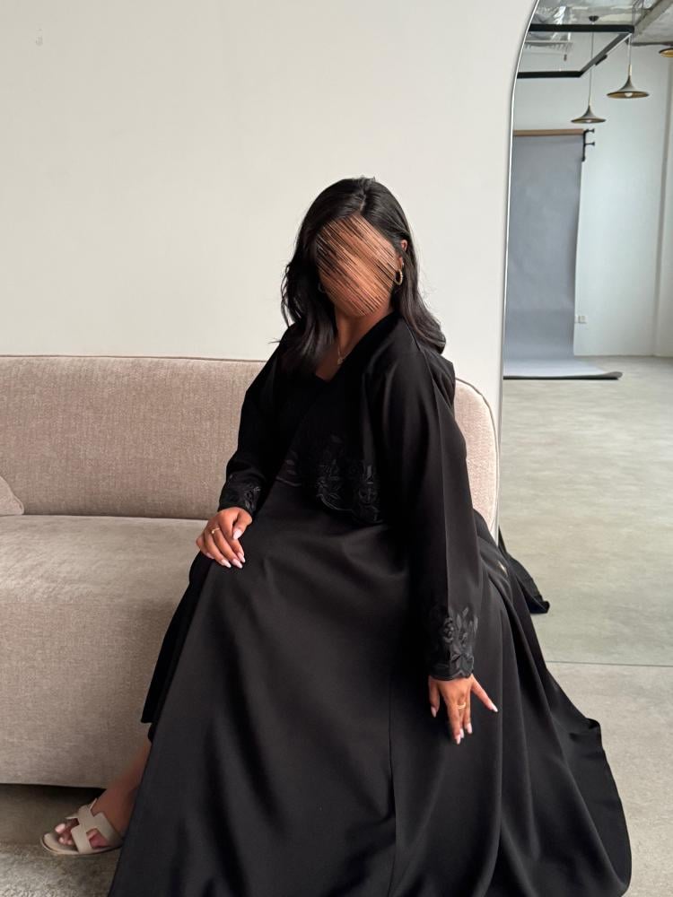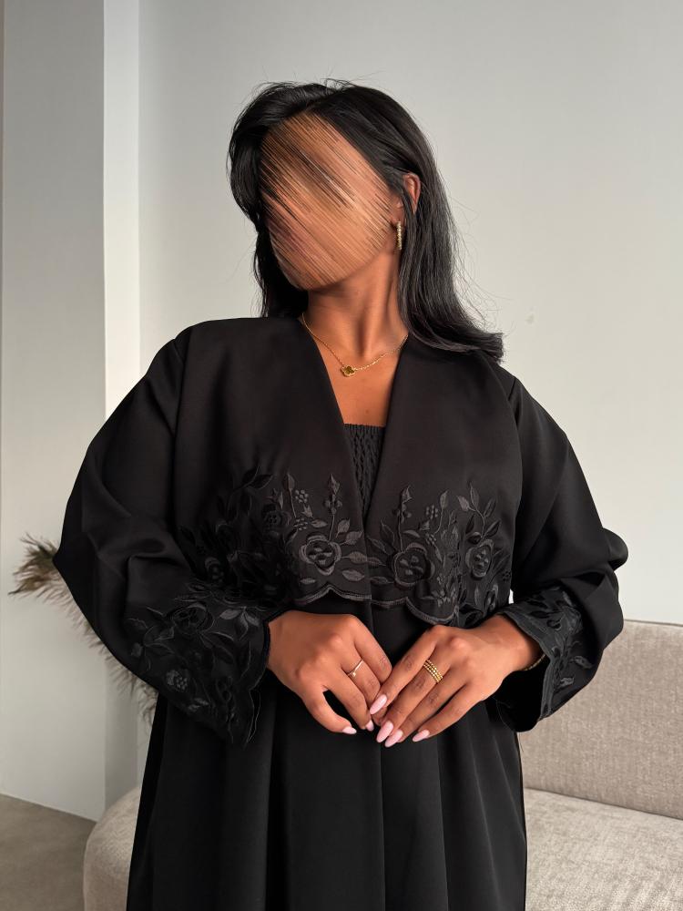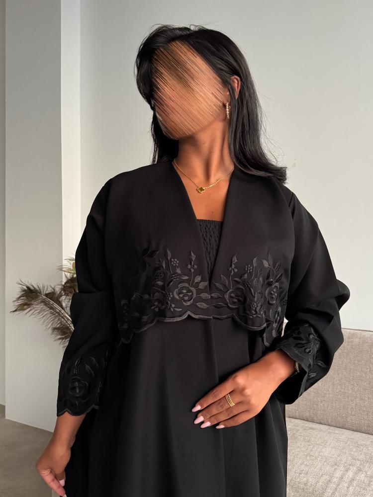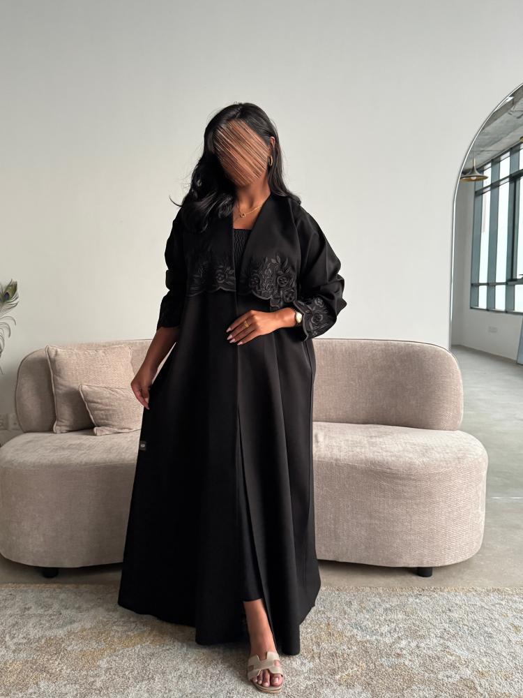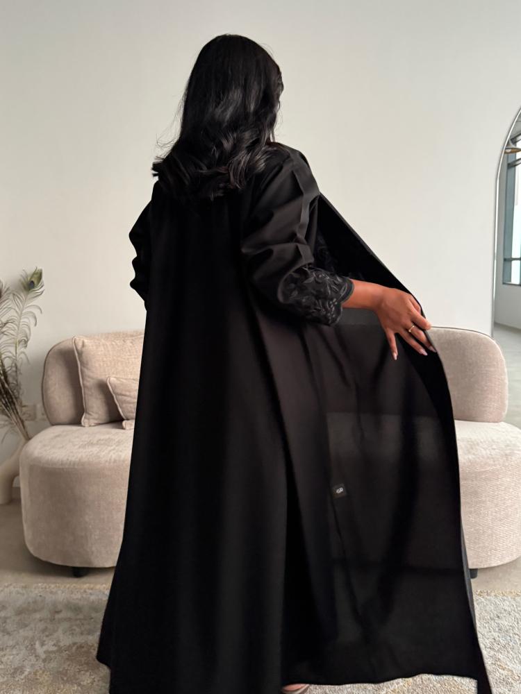 عباية قصة عادية مزينة بتطريز اسود. 1124